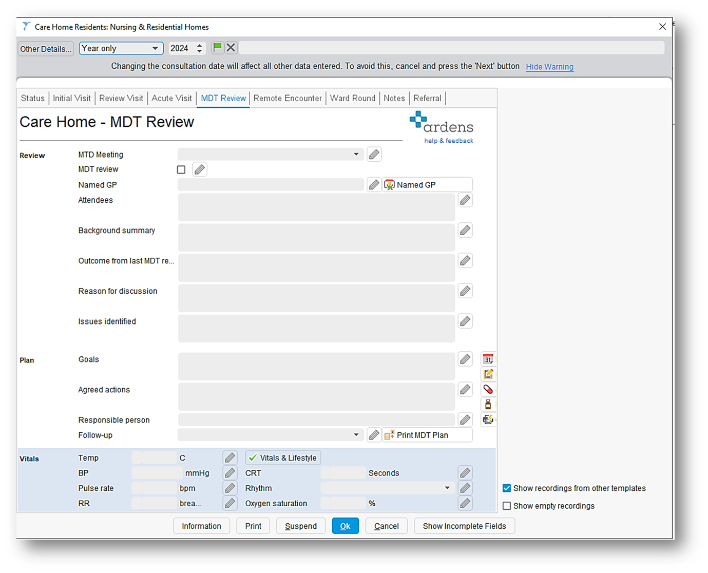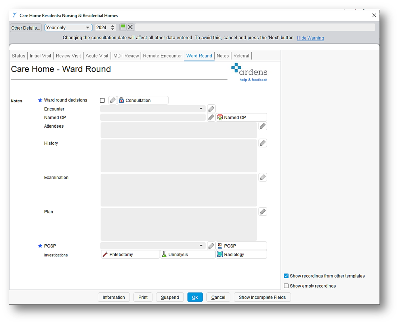 Ward Round information can now be record in the Ward Round tab. Attendees and the consolation can be recorded in the tab along with a link to the Consultation template. For more information on how to use the Consultation template please click here.