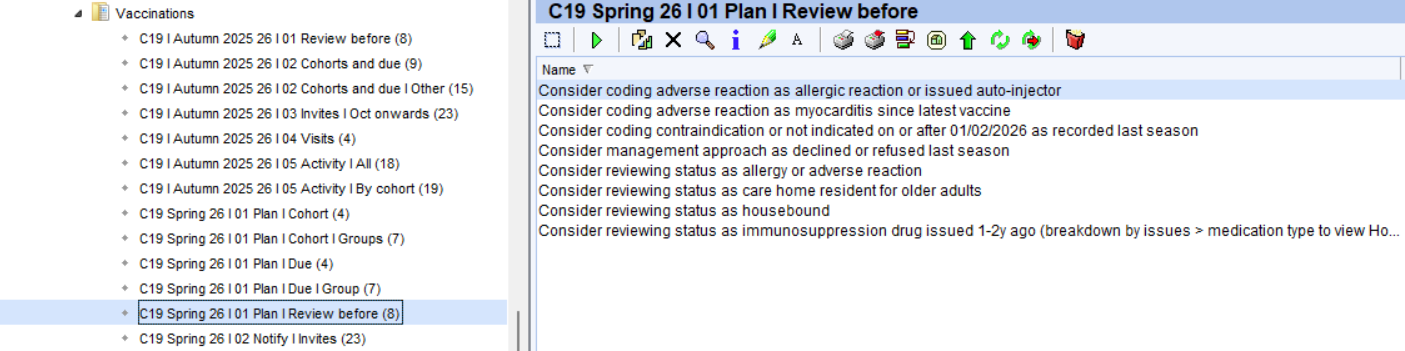 - Consider coding contraindication: Identifies patients with a previous contraindication code recorded. Code for this season if appropriate.